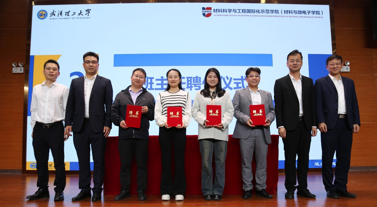 大会第二项,副经理夏建龙宣读班主任聘任文件,聘请赵锐哲老师、尤雅教授、刘勇教授、王学文教授分别为公司微电子本硕2401班、材科sy2401班、材科sy2402班、材科sy2403班主任。王涛经理、严岿书记为班主任颁发聘书。赵锐哲老师作为班主任代表发言,她表示会竭尽所能成为同学们成长道路上的引路人和支持者,希望同学们于治学脚踏实地,对未知永葆好奇,与同学携手共进,为实现国家科技自立自强而不懈奋斗。