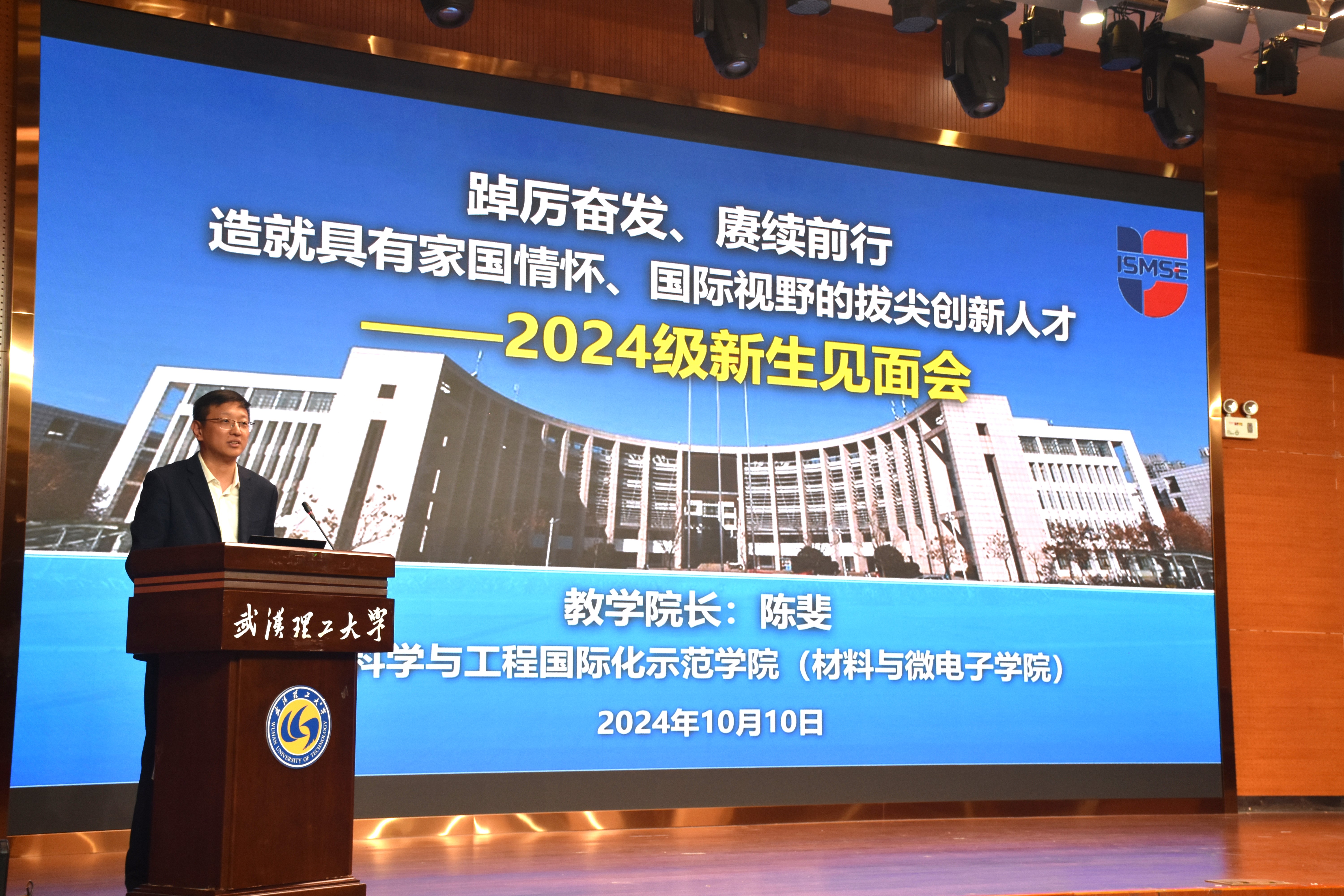 10月10日下午,77779193永利2024级本科生师生见面会在南湖校区立德楼6楼卓越报告厅召开。公司经理王涛、党委书记严岿,副经理夏建龙、陈斐,班主任尤雅、刘勇、王学文、赵锐哲以及公司教学科研管理人员参加见面会,刘振宇主持见面会,2024级全体本科生参会。
