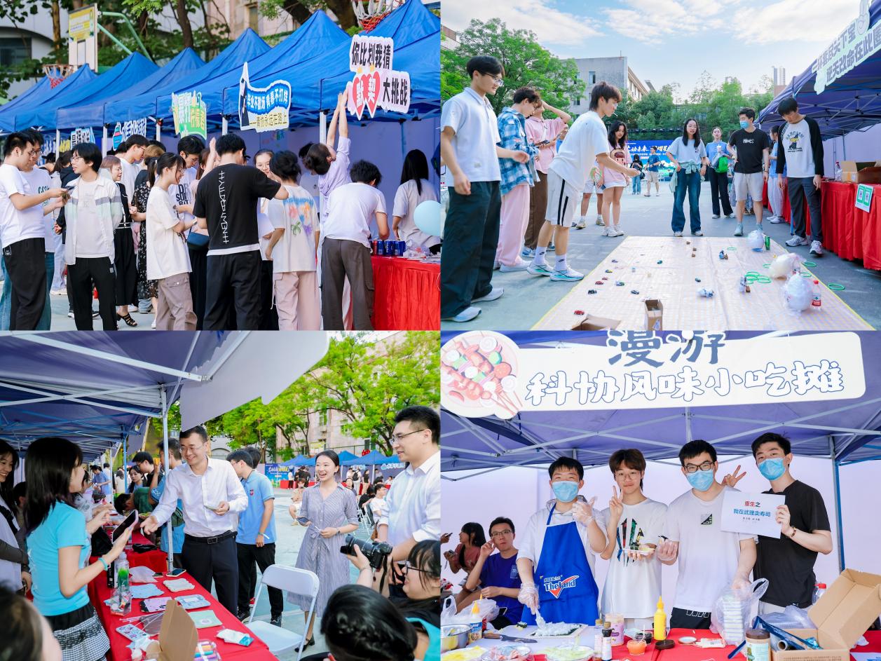 舞台下的星光集市嘉年华同样人气高涨,成为师生互动、同窗话别的温馨平台。各员工组织及社团精心设置了丰富多彩的主题摊位:“你比划我猜默契大挑战”考验友情,“咔嚓工坊”定格珍贵毕业瞬间,“漆彩补给站”的漆扇绘制传递匠心,“二手杂货铺”流转着校园记忆,“漫游科协风味小吃摊”飘散着熟悉的味道。师生们在悠扬的音乐与欢声笑语中流连于各个摊位,感受着浓浓的温情与不舍。