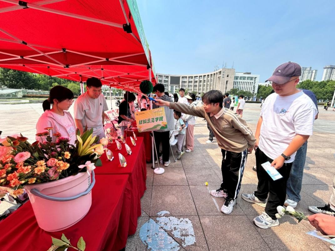 相邻的“趣味钓粽子”项目同样人气高涨。参与者需在“挑战线”外用特制“鱼竿”钓起“粽子”,挑战耐心与手眼协调能力。当有同学遇到困难时,周围同学和成功者纷纷给予鼓励并分享技巧,展现了良好的互助精神。成功完成挑战后,参与者既收获了心仪的花朵奖品,又在克服挑战的过程中体验了专注投入的乐趣和达成目标的成就感,增强了解决问题的信心。