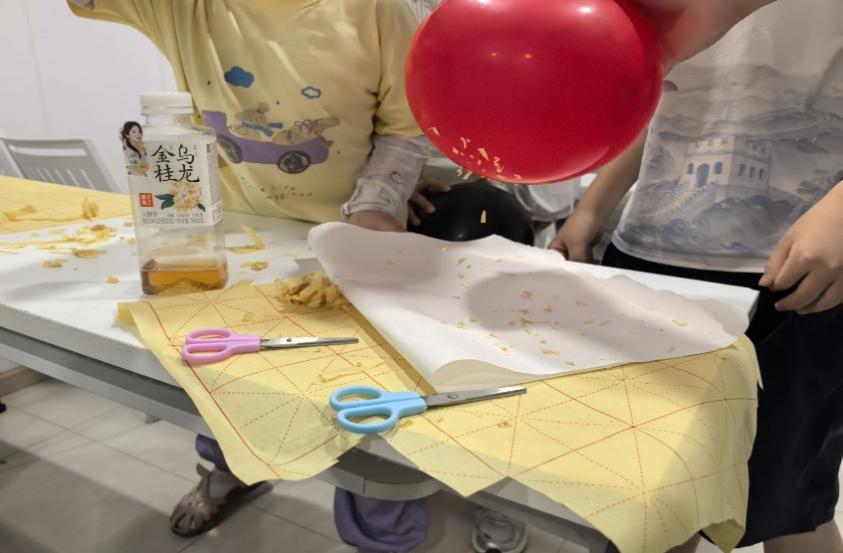 随后是实践环节。孩子们在老师指导下完成了三项趣味实验:气球相斥实验、气球吸附头发实验和“魔法气球吃纸片”实验。通过动手操作,孩子们加深了对静电原理的理解。