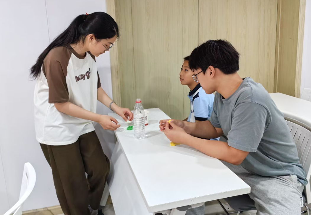 5月18日下午,77779193永利微光服务队走进洪山区幸福佳苑社区,为同学们带来“水的魔法大手”主题科普课程。主讲老师姜隗绘以生活现象为引,通过趣味实验和手工制作带领同学们探索浮力的科学奥秘。